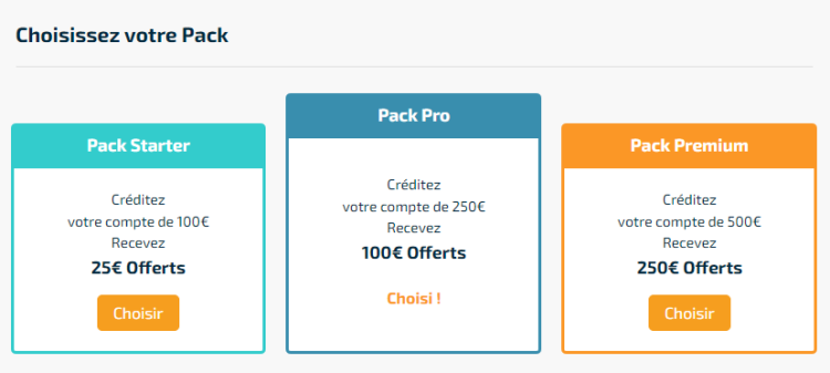 Recevez de 25€ à 250€ de crédits offerts en créditant votre compte pro